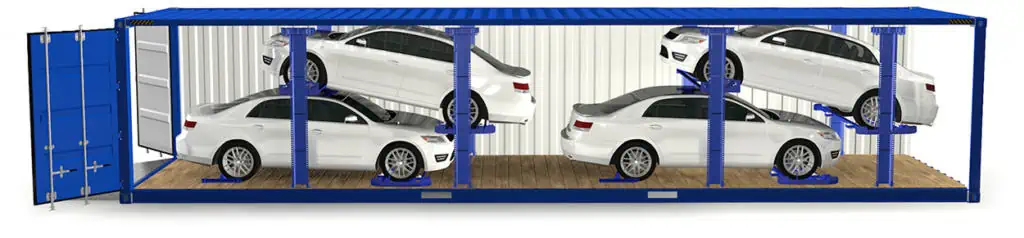 This system allows for the loading of up to five vehicles in one container, and is the safest shipping method available.