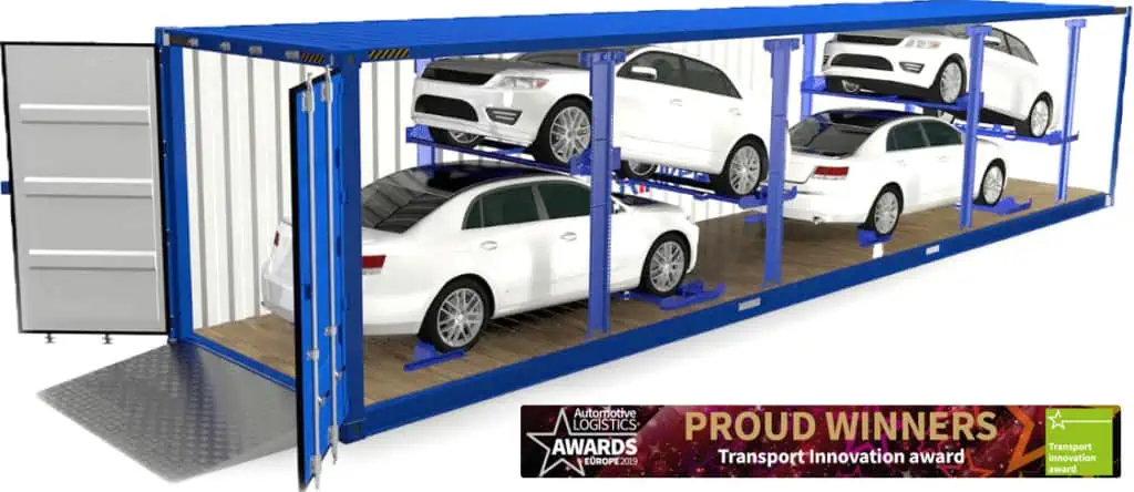 CFR is the premier company in the USA using the industry leading RRAK loading system, and is doing so in partnership with Trans-Rak International, a UK company that designed the system and also holds the patents. This system allows for the loading of up to five vehicles in one container, and is the safest shipping method available. The traditional method of stacking cars in containers is to construct wooden ramps, and load the cars onto those ramps; this is not only much more complicated and decreases safety, but is also environmentally unfriendly.